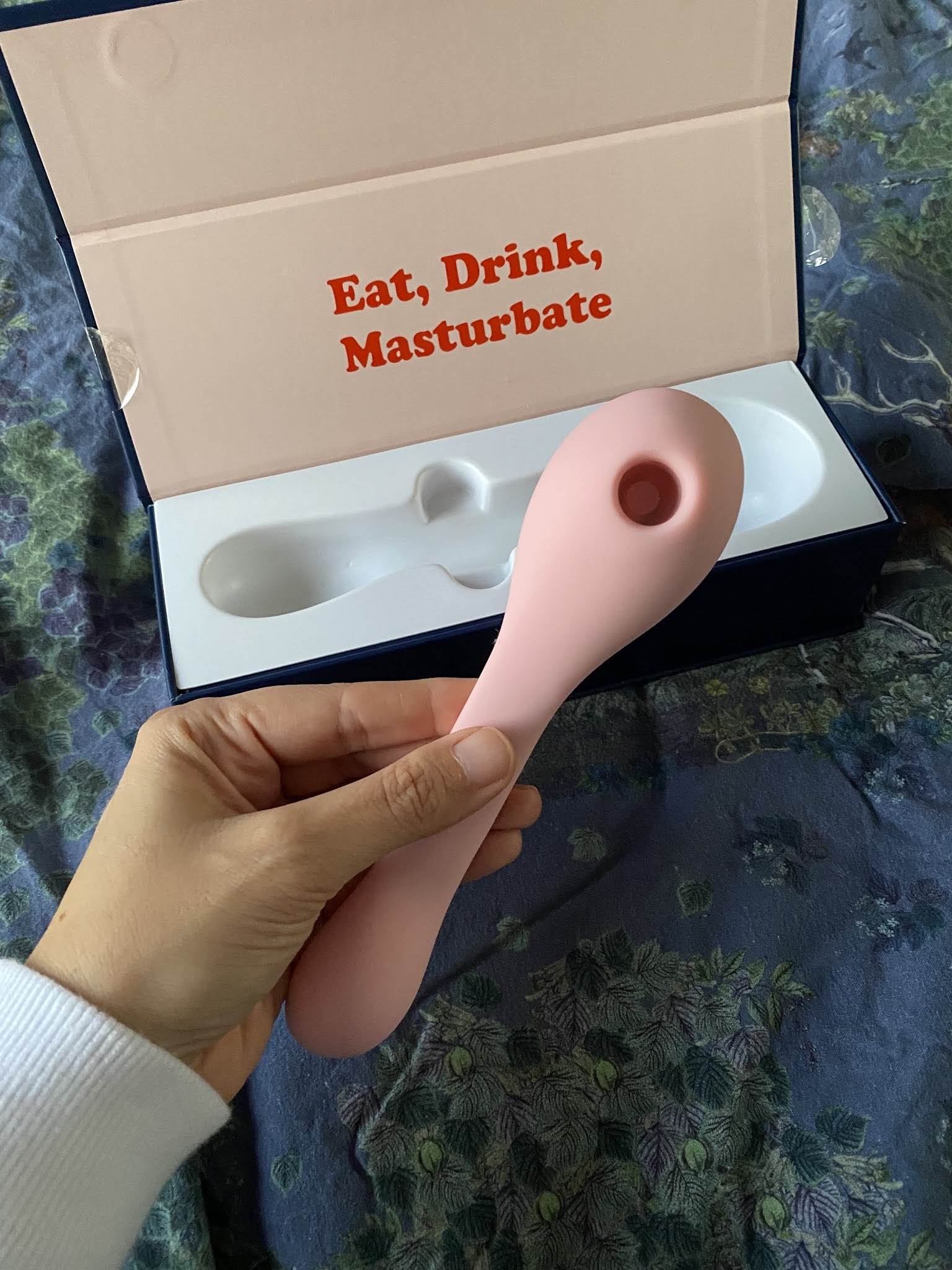 Pour ça, l’outil a des fonctionnalités de compét’ : une partie qui vibre, pour une stimulation externe du clito, ou d’autres zones sensibles, ou en interne pour la stimulation vaginale et en particulier du point G. Une partie qui aspire (le clito), non pénétrante, qui permet aussi d’atteindre l’orgasme avec des ondes de pression. TMTC ça nous rappelle un peu le Womanizer, énorme révolution dans le milieu du sextoy. Le truc a détrôné le rabbit à la vitesse de l’éclair (moi j’aime quand même le rabbit)